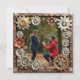Mariage romantique Enregistrer les cartes Date. Steampunk à thème métal or engrenages, cuivre, argent et or fleurs et un patiné arrière - plan rustique blanc en métal affaissé. Téléchargez votre image préférée dans la zone de personnalisation et modifiez le texte au dos pour ajouter vos propres informations de mariage.