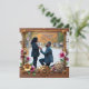 Mariage romantique Enregistrer les cartes Date. Des engrenages en métal doré à thème Steampunk, des fleurs roses et or et un arrière - plan en bois épais blanc rustique patiné. Téléchargez votre image préférée dans la zone de personnalisation et modifiez le texte au dos pour ajouter vos propres informations de mariage.