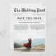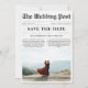 Annoncez votre amour comme un titre ! Ce mariage classique de style journal, save-the-date, dispose d'une photo romantique et d'une disposition en noir et blanc intemporelle. Avec un design et un espace d'inspiration vintage pour votre histoire unique, c'est le parfait mélange de plaisir, de romantisme et d'inoubliable.