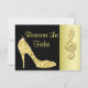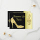 Cartes "Save The Date" personnalisées pour femmes, élégantes et recto-verso pour une fête d'anniversaire de 25 ans avec éclat et glamour. Belle carte "save the date" dorée et noire pour femme avec une superbe image imprimée glamour avec strass, paillettes, sequins, diamants, bijoux brillants, talons hauts, stilettos, chaussure de mode, et clé de sol dorée scintillante sur fond noir et or. Chic, classe, mignon, féminin, moderne, cartes "save the date" pour anniversaires dans des couleurs tendance et à la mode. Ces cartes branchées, chics, élégantes, sophistiquées, jolies et girly sont décorées/imprimées sur les deux côtés. VEUILLEZ NOTER : Tous les produits sur Zazzle ont des images imprimées plates.