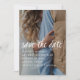 Ces cartes de date élégantes sont dotées d'une typographie blanche moderne et vous enregistrez les détails de la date dans un texte blanc simple. Insérez facilement votre propre photo en utilisant le modèle. Il y a une couche de superposition qui est placée sur votre photo pour l'assombrir afin de permettre au texte de s'afficher clairement, quelle que soit la lumière de votre photo.