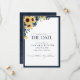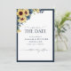 Créez le mariage parfait Enregistrez la carte Date avec ce joli design moderne avec un motif floral bleu marine couleur tournesol et typographie manuscrite. Contacter le concepteur pour les produits correspondants. Copyright Invitations élégants, tous droits réservés.