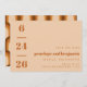 Annoncez votre grand jour avec cette carte de datation d'inspiration rétro, avec des tons chauds de terre, des motifs vintages d'arcs, et un agencement moderne audacieux. Le format de date vertical unique crée une esthétique contemporaine mais nostalgique, parfaite pour les couples qui aiment les thèmes modernes du milieu du siècle ou les thèmes mariages boho. Idéal pour des styles minimalistes, chaleureux ou artistiques mariages, ce design donne le ton d'une fête mémorable. Personnalisez avec vos noms et les détails mariages pour en faire le vôtre !