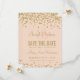 Elégant design "Sweet 16 ( Seize ) Anniversaire de fête SAVE THE DATE" avec Parties scintillant d'or Confetti sur rose pâle, ainsi que nom personnalisé et détails texte. Impressionnez votre famille et vos amis avec cette carte élégante et séduisante. Facile à utiliser et facile à personnaliser. Commandez aujourd'hui !