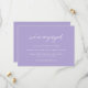 Mariage moderne enregistrer la carte de date avec un design typographique contemporain avec "nous sommes engagés" dans la typographie de script élégante. Vous trouverez ci-dessous les détails de votre événement dans une mise en page simple et minimale. Le thème de couleur est perwinkle violet et peut être modifié par l'outil d'édition de conception.
