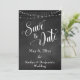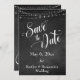 Cette carte sophistiquée mais rustique Save the Date est parfaite pour un mariage décontracté. Avec un arrière - plan de tableau noir texturé et une chaîne d'accents lumineux blancs scintillants, j'ai combiné une police de script élaborée et tourbillonnante de ma collection pour rendre graphique représentant les mots "Save the Date"; au dos, j'ai placé le mot "love". Vos données personnelles sont facilement ajoutées pour customiser ce modèle aussi peu ou pas que vous le souhaitez. Utilisez les champs modèle pour entrer vos données personnelles, puis cliquez pour customiser plus loin si vous souhaitez repositionner les calques déverrouillés. N'hésitez pas à me contacter pour des demandes spéciales ou pour obtenir de l'aide sur la personnalisation. // 73 //// // Conçu par Melody Watson pour Paper Muserie.