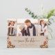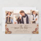 Taupe Autumn Floral Photo Enregistrer la date. Annoncez votre grande journée de chaleur et de personnalité en utilisant cette carte de datation magnifiquement conçue enregistrer avec un collage de trois photos fiançailles. Placée contre un arrière - plan taupe doux, la carte est encadrée de feuilles d'aquarelle peints à la main dans l'orange brûlé et en terre cuite, de dahlias crème et beige et de riches roses en cuivre pour un look chute vraiment romantique. La mise en page de la photo vous permet de mettre en valeur votre histoire d'amour visuellement, tandis que les détails floraux s'cravate en toute transparence dans le reste de votre thème mariage. Commencez à créer une première impression sincère - concevez votre enregistrement de la date aujourd'hui.