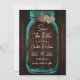 Rustic teal wedding save the date card featuring a mason jar and burlap hearts against a barn wood background. Easily personalize this romantic rustic teal wedding save the date online. Matching items available to complement this teal wedding save the date card.