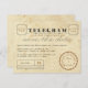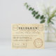 Ce Telegram d'inspiration vintage Save the Date Card est un moyen amusant et unique d'annoncer votre grand jour ! Montré avec des encres brun clair, brun foncé et noir. L'arrière - plan photographié sépia/thé taché sera imprimé sur la surface du papier pour donner au design un aspect vieilli. Customisez la carte en imprimant vos noms, votre date de mariage et votre emplacement sur le devant, et veillez à inclure tous les renseignements sur les déplacements et le site Web du mariage au verso. Pour régler les couleurs, cliquez sur le bouton orange "customiser" ci-dessus. D'autres couleurs de police apparaîtront à droite.