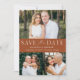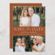 Élégant, multi-photo enregistrer la date avec "Save the Date" affiché en lettres blanches avec un arrière - plan en terre cuite. Personnalisez le QR moderne enregistrez la carte de date avec 3 de vos photos préférées, vos noms, date mariage et emplacement du mariage. La terre cuite enregistrer la date inverse pour afficher votre code QR personnalisé avec le site Web mariage et le texte personnalisé.