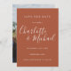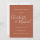Doté de noms de style signature, cette élégante carte en terre cuite peut être personnalisée avec vos informations spéciales de jour de mariage dans la typographie chic et votre photo spéciale au verso. Conçu par Thisisnotme©