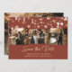 Elégante photo personnalisée en terre cuite et mariage d'or enregistrer les cartes de date avec une police de script moderne. Notre mariage sauf la date présente un montage photo de 4 images contre un arrière - plan en terre cuite orné de lampes à cordes. Personnalisez facilement cette terre cuite et l'or enregistrer la carte de date avec vos images et les détails du mariage, y compris un site Web mariage, si désiré. Pour des demandes personnalisées, envoyez-nous un message.
