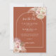 Belle aquarelle fleurie pampas herbe et arche chic encadrent vos détails de sauvegarde de la date set dans la typographie stylisée sur un arrière - plan en terre cuite avec votre photo spéciale et les noms au verso de cette élégante invitation. Conçu par Thisisnotme©