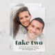 Cette carte de date tendance, élégante et amusante change la carte de date comprend deux photos du couple. Sur le devant, il y a décontracté texte vert émeraude moderne qui dit "prenez deux", avec vos nouveaux détails mariages. Au dos se trouve une seconde photo du couple, qui s'est estompée. Un mariage chic et simple, fantaisiste change la carte de date qui mettra en valeur vos photos personnelles préférées !