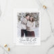 La photo de votre couple est présentée sur cette élégante carte de datation. Un cadre blanc simple lui donne l'importance qu'il mérite. Enregistrer la date est écrit dans un texte moderne et tendance. Deux lignes de texte vous permettent de personnaliser votre message. Le texte au verso fournit plus d'informations. Conçu pour embellir facilement n'importe quelle photo de style pour n'importe quelle saison. Très facile à customiser.