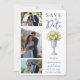Classic Chalice Vase with Mediterranean Lemons and Flowers 3-Photo Wedding Save the Date Cards with QR Code Back.