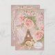 Faire-part de mariage "Tour Eiffel française élégante" à Paris avec un beau collage imprimé shabby chic de roses roses, fleurs printanières, volutes et fioritures ornées et la Tour Eiffel pour annoncer la date de votre mariage.