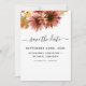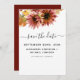 Bourgogne et Jaune Tournesol Rustique Extérieur Feuillage Aquarelle Mariage Printanier Enregistrez la Date Élégantes et Modernes Invitations sur fond Blanc - comprend une belle et élégante typographie script avec des feuilles et de la verdure botaniques modernes d'Automne ou d'automne pour la célébration spéciale du jour du Mariage.