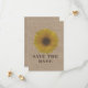 Un mariage enregistrer la date avec une image arrière - plan de bois d'écorce sur l'avant et l'arrière. L'avant est ornée d'une image de tournesol. Personnalisez le texte. Recherchez des invitations de mariage assorties et plus encore chez Jill's Paperie.
