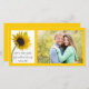 Donnez le ton pour vos prochains noces d'été ou d'automne avec l'élégante tournesol jaune sur le mariage blanc Enregistrer le Carte photo de date. Cet élégant mariage fleuri personnalisé garde la photocarte datant présente une photo florale d'une fleur de tournesol jaune sur la tige dans un vase en verre avec un arrière - plan blanc éclatant. Idéal pour votre fête d'été et fête de mariage et fête de réception.