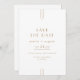 Ce mariage sauve la date de l'Everly Collection dispose d'un design blanc minimaliste avec des lignes art déco fines et de type or chaud. L'aménagement centré et l'espacement généreux offrent un aspect poli et moderne.