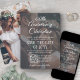 Annoncez la joyeuse nouvelle de votre fête post-fuite amoureuse avec des cartons d'invitation "Nous nous sommes dit oui, Nous l'avons fait, Nous nous sommes enfuis !" à personnaliser avec une superposition de photo unique. Les 2 photos, le code QR scannable et tout le texte de ce modèle d'invitation sont faciles à personnaliser. (CONSEIL DE PLACEMENT D'IMAGE : Un moyen simple de centrer une photo exactement comme vous le souhaitez est de la rogner avant de la télécharger sur le site Web de Zazzle.) Personnalisez-la pour tout type de célébration, comme une réception de mariage seule, une cérémonie de renouvellement de vœux, un deuxième mariage ou une fête de 1er anniversaire. Incluez la date du mariage, le lieu, le site Web ou tout autre détail important de votre choix. Le design élégant et chic noir et blanc présente deux photos du couple nouvellement marié, une calligraphie script manuscrite moderne tendance et une typographie de machine à écrire élégante. En scannant le code QR avec leur téléphone, les invités sont directement envoyés sur le site Web du mariage où ils peuvent voir tous les détails importants et se connecter avec vous en