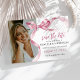 Elevate your graduation celebration with our chic and trendy graduation save the date cards. Sporting a sophisticated watercolor pink ribbon tied into a bow, and your favorite photo, these invites eloquently merge style and elegance. Our easy-on-the-fingers personalization feature makes it a joy to invite your loved ones. Plus, digital download option available for those who love a good blend of modern and traditional.
