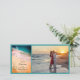 Annoncez votre cérémonie de mariage décontractée mais classe à venir île inspo destination mariage et réception avec le joli Tropical Beach Wedding Save the Date Carte photo. Ce mariage à thème personnalisé de tropiques garder la date faire-part photocard présente une photo nature pittoresque de l'océan turquoise ou bleu aqua sur une plage de sable blanc avec un palmier et un design tourbillon turquoise ornant le coin.