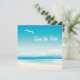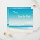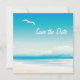 Océan bleu turquoise et ciel bleu clair. Ondes océaniques s'écrasant sur le rivage, mouettes flottant dans le ciel et une silhouette de palmiers - invitations de mariage entièrement personnalisables et extras assortis.