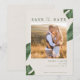 Ce lin photo mariage de plage tropicale enregistrer la date dispose d'un élégant arrière - plan en papier de lin ivoire avec un design de feuilles tropicales vertes. Annoncez votre journée spéciale dans le style avec ce design sophistiqué qui saisit parfaitement l'essence d'un mariage tropical de plage.