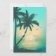 Les teintes assoiffantes de turquoise, beurre jaune et vert de mer donnent les pièces dans ce design assortis et certains de ses attraits irrésistibles... les beaux palmiers de l'île, les frondes de palmiers, les oiseaux délicats dans le ciel et le lever du soleil géant sur l'eau scintillante fournissent facilement le reste. La carte Save the Date de mariage présentée ici présente tous les éléments ci-dessus ainsi qu'une ombre de palmier sur le sable pour un revers frappant. Recherchez ID581 pour voir les produits correspondants et d'autres options de couleur pour cette conception.
