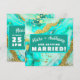 Annoncez votre mariage traditionnel ou de destination avec ce modèle facile à mettre à jour. Remplissez simplement le nom, l'âge, la date, l'heure, le lieu de la fête et toute note de réponse ou autre information. Changez de "Marc et Anthony se marient !" à "Les Willoughby organisent Noël !". Disponible dans de nombreux modèles pour chaque occasion. Le design élégant présente une peinture à l'encre alcoolique avec des verts turquoise et des sarcelles avec des accents marbrés blancs. La feuille de faux or 24K complète le motif luxueux.