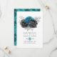 Carte de mariage à save the date en fleurs scintillantes fausses turquoise rustique (teal), noire et argent, personnalisable selon les spécificités de votre événement.