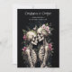 Two Romantic Gothic Human Skeletons Embracing Surrounded By Lush Floral Arrangements Save the Dates Cards with QR Code