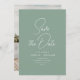 typographie blanche conception verte sage avec lettrage moderne et élégant. Notre magnifique mariage personnalisé enregistrer les cartes de date dispose d'un design étonnant qui complète n'importe quel thème mariage. L'avant de la carte comporte un texte personnalisé ainsi qu'une belle image.