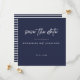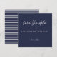 mariage bleu marine simple moderne enregistrer la carte de date avec la typographie de script de style de texte professionnel blanc.