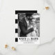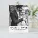 Typographie classique noire et blanche Photo Enregistrer la date Annonce. Personnalisable enregistrer l'annonce de date avec la typographie classique noire et rayures retour motif. Personnalisé en ajoutant votre propre photo et vos détails. D'autres couleurs sont disponibles.