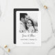 Typographie de script moderne photo en noir et blanc Carte Save the Date à plat. Élégante carte Save the Date avec écriture et police élégante. Le contraste noir au verso apporte une fraîcheur mise à jour au design de la carte Save the Date. Également disponible en téléchargement numérique instantané pour votre commodité. Vous pouvez trouver plus d'options de cartes Save the Date similaires à celle-ci dans la collection Modern Minimalist Black and White Save the Date dans la boutique The Gathering Designs.