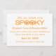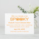 Typographie Éffrayante amusante et décalée Halloween Enregistrer la date Annonce en blanc et orange avec un design de texte amusant du mot "éffrayant" avec une paire de fantômes charmants hantant les deux lettres "O". Ce design chic est parfait pour annoncer votre rendez-vous mariage autour ou sur Halloween. Facile à customiser, il suffit d'ajouter les détails de votre mariage dans les champs de texte fournis. Pour plus d'options de personnalisation, cliquez sur le bouton "Customiser" pour modifier les polices, les couleurs de texte ou déplacer l'élément de conception.