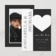 Augmentez vos invitations de mariage avec une élégance sobre. Notre design minimaliste présente une palette noire et blanche frappante. Une typographie simple et des lignes épurées créent une invitation sophistiquée qui laissera une impression durable à vos invités. Un grand coeur blanc et votre photo de couple préférée sur le dos ajoute une touche de romance. Créé par Simply Farmhouse Press.