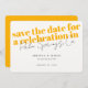 Osez faire la fête avec ce mariage moderne et audacieux enregistrer la conception de la date, une prise unique enregistrer les invitations de date pour les couples modernes avec un jaune doré audacieux, une police de script moderne pour votre emplacement mariage et des éléments de texte entièrement personnalisables. Un choix parfait pour un mariage du désert, un mariage insulaire ou un mariage d'été ! Toutes les couleurs peuvent être changées aussi si vous le souhaitez afin que vous puissiez facilement passer du jaune à n'importe quelle autre couleur que vous voulez!
