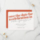Osez faire la fête avec ce mariage moderne et audacieux enregistrer la conception de la date, une prise unique enregistrer les invitations de date pour les couples modernes avec orange brûlée brillante et audacieuse, une police de script moderne pour votre emplacement mariage et des éléments de texte entièrement personnalisables. Un choix parfait pour un mariage, un mariage de automne ou un mariage d'été dans le désert ! Toutes les couleurs peuvent être changées aussi si vous le souhaitez afin que vous puissiez facilement passer de l'orange vif à toute autre couleur que vous voulez!