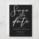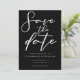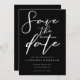 Simplement chic et élégant, notre collection minimaliste de mariage d'hiver comprend une typographie cursive élégante pour votre événement moderne. Envoyez une soirée à vos invités Enregistrer la carte Date avec un script blanc en gras accrocheur sur un arrière - plan noir.