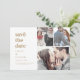 Cette typographie or moderne 3 photo collage enregistrer la carte date est parfait pour un mariage simple. Le design minimaliste or et blanc présente une police rétro mais contemporaine, dans un style bohème rustique unique. Parfait pour toute saison. Gardez-le minimal, en l'état, ou ajoutez vos propres graphiques et illustrations.