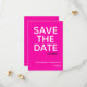 Un mariage Enregistrer la carte Date qui est brillante, directe et audacieuse. Ce design de typographie transforme le message dans un jeu de couleurs rose, blanc et noir éclatant. Placez simplement vos informations sur cette carte, ajoutez-le à votre panier et faites un merveilleux mariage. Simple Bold Bright Pink Typographie Enregistrer la date Jour férié Design | ©Melissa Patton - Designer