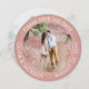 Annoncez les nouvelles joyeuses de votre fiançailles et de votre prochain mariage avec une photo personnalisée ronde unique enregistrer les dates. Les 2 photos et toutes les formulations de ce modèle d'invitation sont simples à personnaliser. (CONSEIL EN MATIÈRE DE PLACEMENT D'IMAGE : Une façon simple de centrer une photo exactement comment vous voulez est de la rogner avant de la télécharger sur le site Zazzle.) Le design rose rose or et blanc présente deux images du couple engagé, une typographie moderne et moderne et minimaliste, et une calligraphie manuscrite élégante. Cette carte de faire-part unique est une façon élégante et amusante d'informer vos amis et votre famille de votre prochaine fête spéciale. Félicitations à la mariée et au marié !