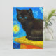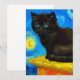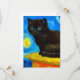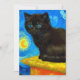 Carte avec un chat Van Gogh dans le style de la nuit étoilée! Un chaton noir moelleux perche sur une table contre un ciel bleu nuit et une lune jaune. Un cadeau à la purr pour les amoureux de les chats et collectionneurs d'art hollandais !