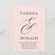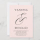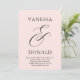 Un mariage moderne enregistrez la carte de date avec un agencement simple et minimal avec vos noms et une élégante esperluette dans un grand format au-dessus des détails de votre événement. Le thème de couleur est rose et gris et peut être modifié dans l'outil d'édition de conception.