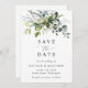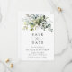 Invitations amis et famille dans le style et donner le ton pour votre journée spéciale avec ce charmant enregistrer la carte de date. Le design présente des feuilles d'eucalyptus et de la verdure sur arrière - plan blanc.