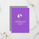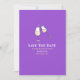 Une carte plate minimaliste "save the date" comporte une illustration dessinée à la main de deux verres à champagne inclinés l'un vers l'autre en couleur pêche pastel bordée de gris. Ils sont posés sur un fond violet pourpre et comportent des modèles pour votre texte personnalisé en blanc et orange pêche en dessous. Le fond gris au verso comporte un modèle pour des informations supplémentaires, si nécessaire. Celles-ci sont idéales pour les annonces de mariage straight et LGBTQ+.